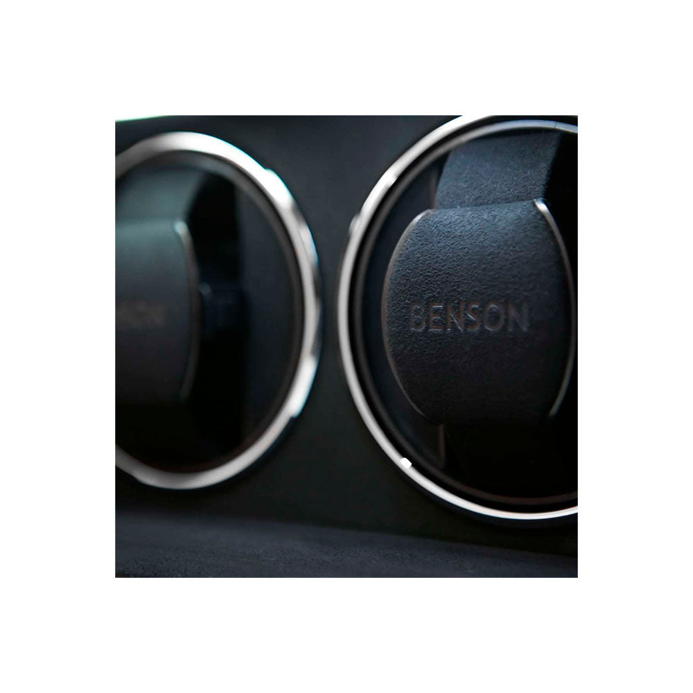 Nahkaisella salmiakkikuviolla verhoiltu Benson kellonpyörittäjä huokuu laatua! Swiss-sarja on Benson-tuotemerkin uusin sarja, joka on varustettu korkealaatuisella sveitsiläisellä tekniikalla. Laadukas turvajärjestelmä sammuttaa hiirenhiljaisen moottorin, kun asetat tai irrotat kellon pyörittäjästä. Laadukas mineraalilasi, helppolukuiset LCD-näytöt ja LED-valaistus tarjoavat mukavuutta ja laatua.| Tuotetyyppi | Kellonpyörittäjä |