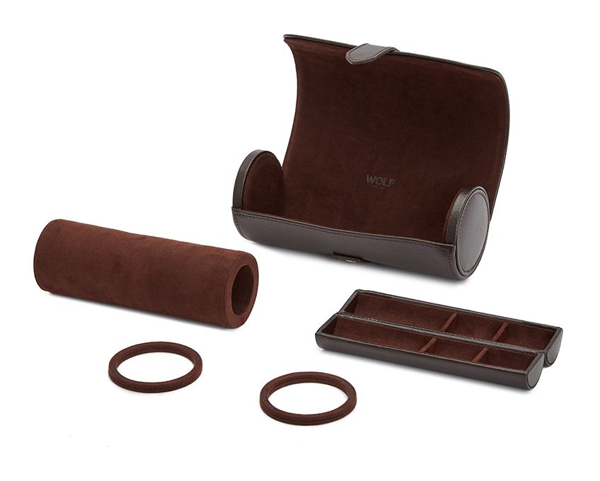 Arvokellosi pysyy turvassa ja välttyy kolhuilta ja naarmuilta Wolfin laadukkaassa matkakotelossa. Kellorulla on Wolfin yksi suosituimmmista tuotteista. Se on valmistettu pintakuvioidusta nahasta ja sisäpuolen kellotyynyt ovat pehmeää mokkajäljitelmää. Molemmat värit heti varastosta!