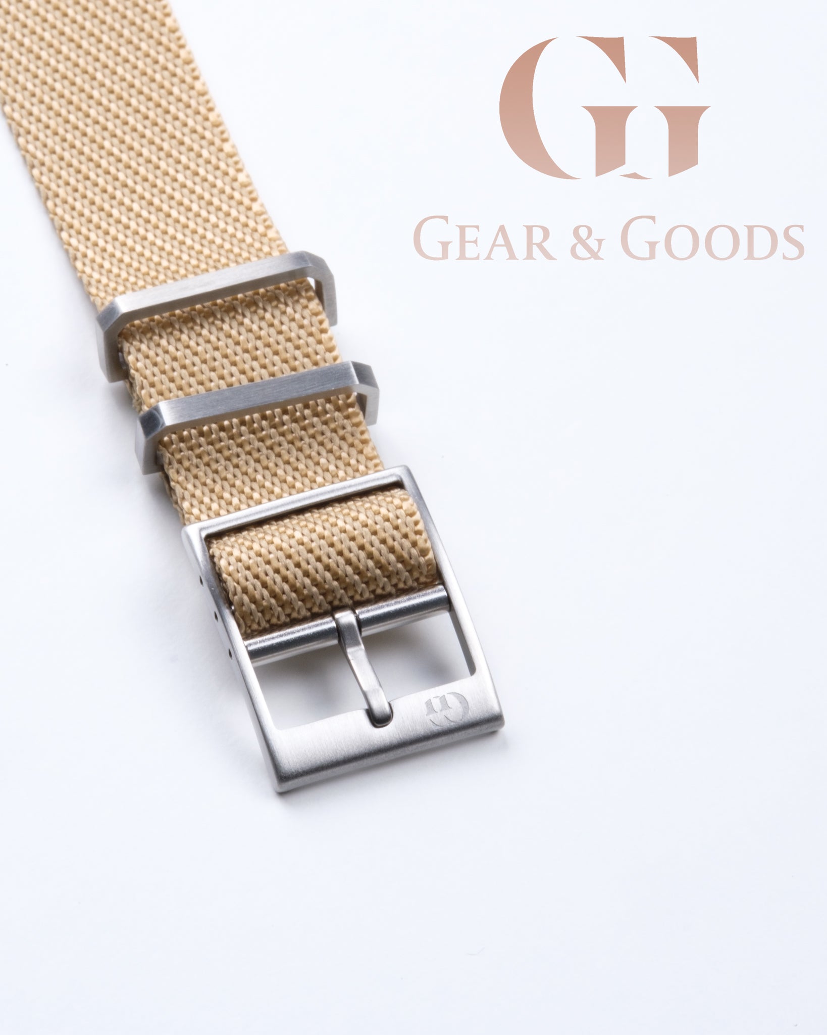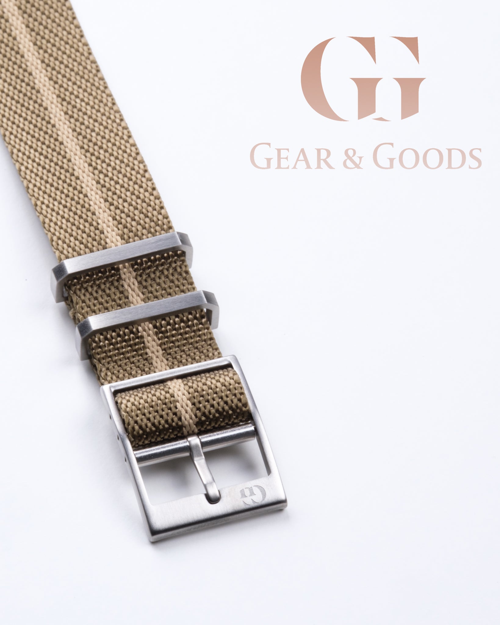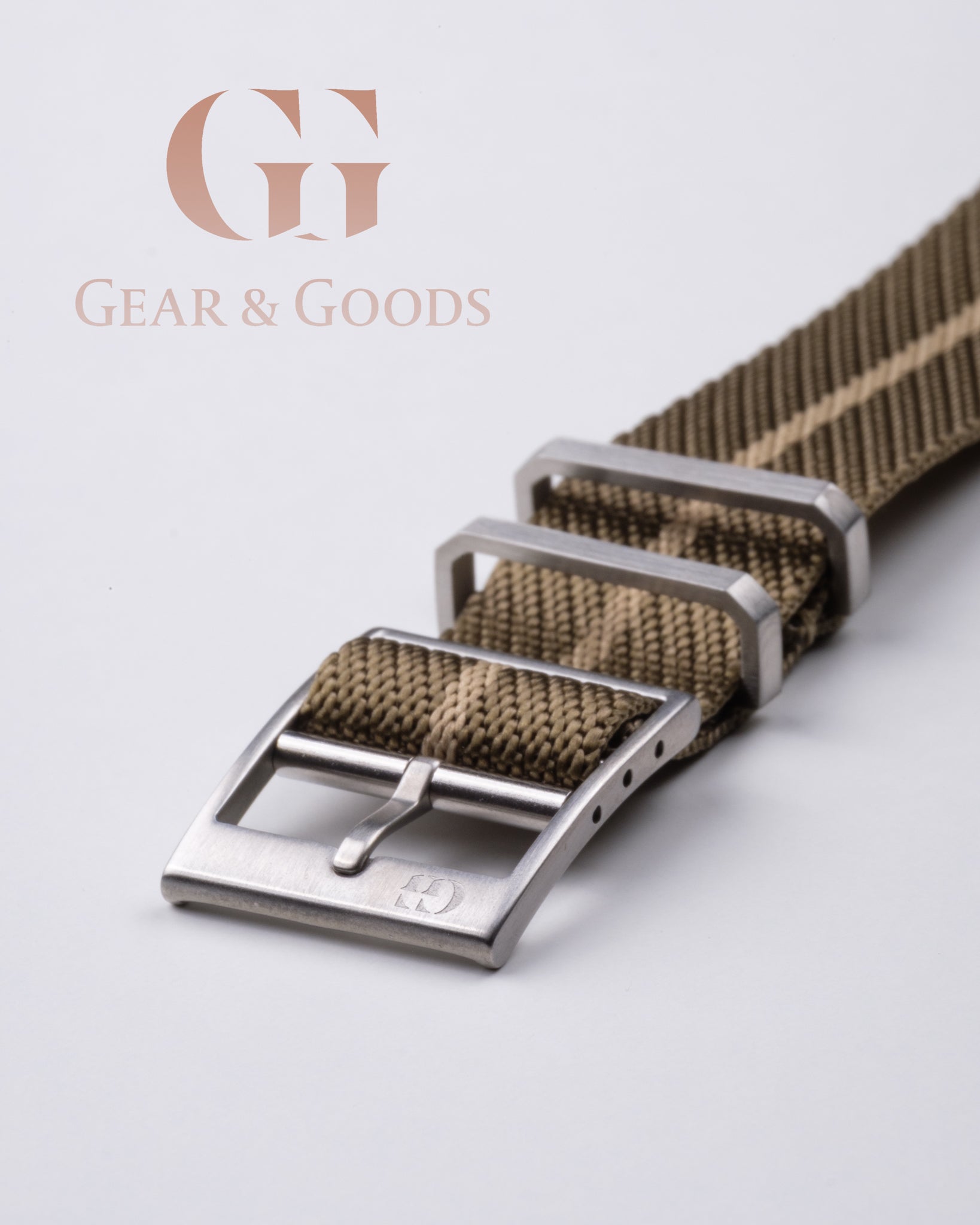 Gear & Goods "CHEVRON SINLE-PASS" on ylivoimaisesti hienoin, paras ja ainoa euroopasta fiksusti tilattava single-pass. Harjattu G&G terässolki varmistaa, että arvokellosi pysyy turvallisesti ranteessa. Natorannekkeiden etu on ehdottomasti se, että jos jousitappi sattuu pettämään - kello jää toisesta jousitapista kiinni rannekkeeseen eikä tipu maahan.