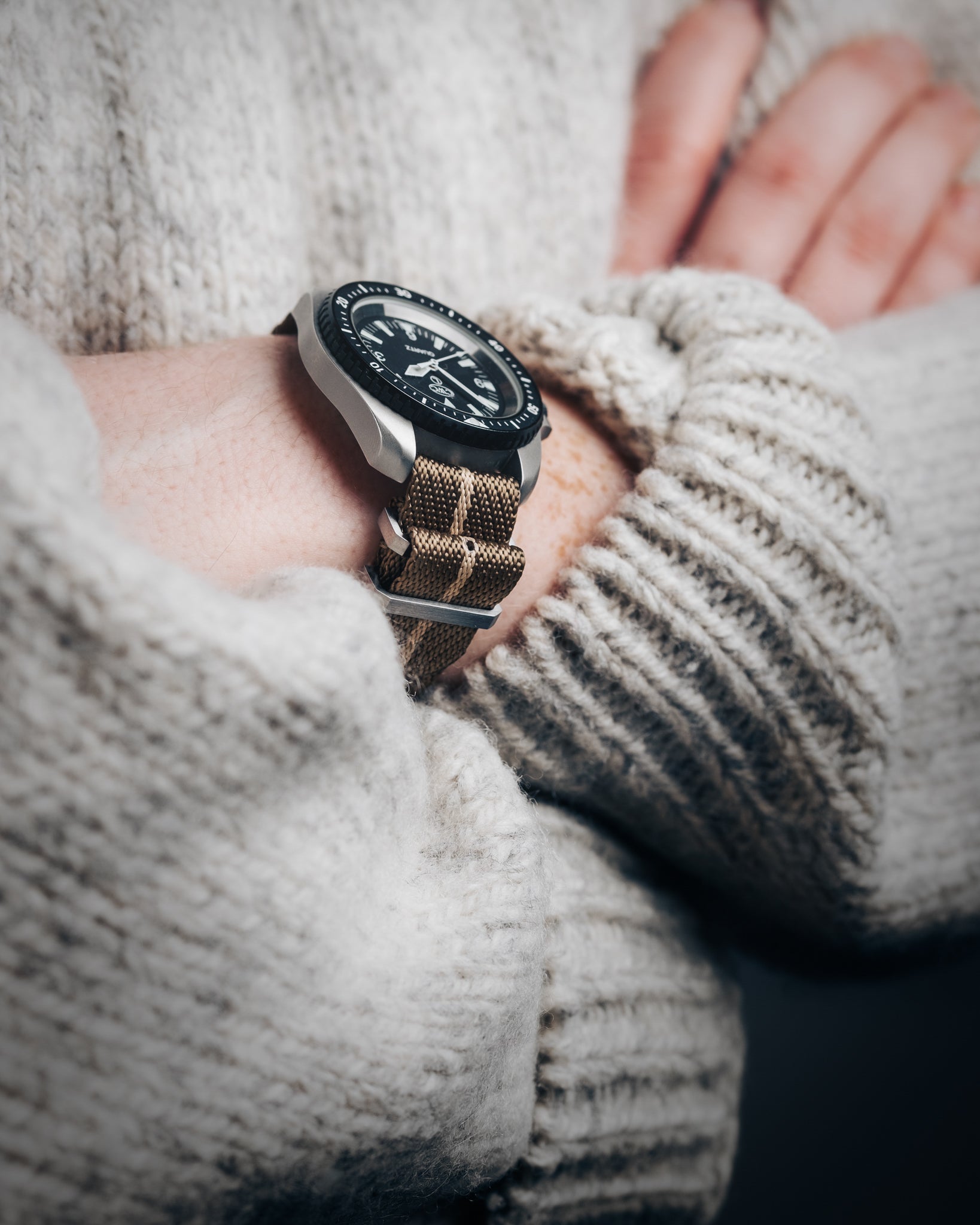 Gear & Goods Chevron Single-Pass on erittäin laadukas, säädettävä natoranneke, joka menee rannekellon alta vain kerran - mahdollistaen näin hyvän ranneistuvuuden. Tällä tavalla natoranneke ei korota kellon ranneistuvuutta. Monipuolisen säätövaran ansiosta saat aina parhaan istuvuuden juuri sinun ranteellesi.