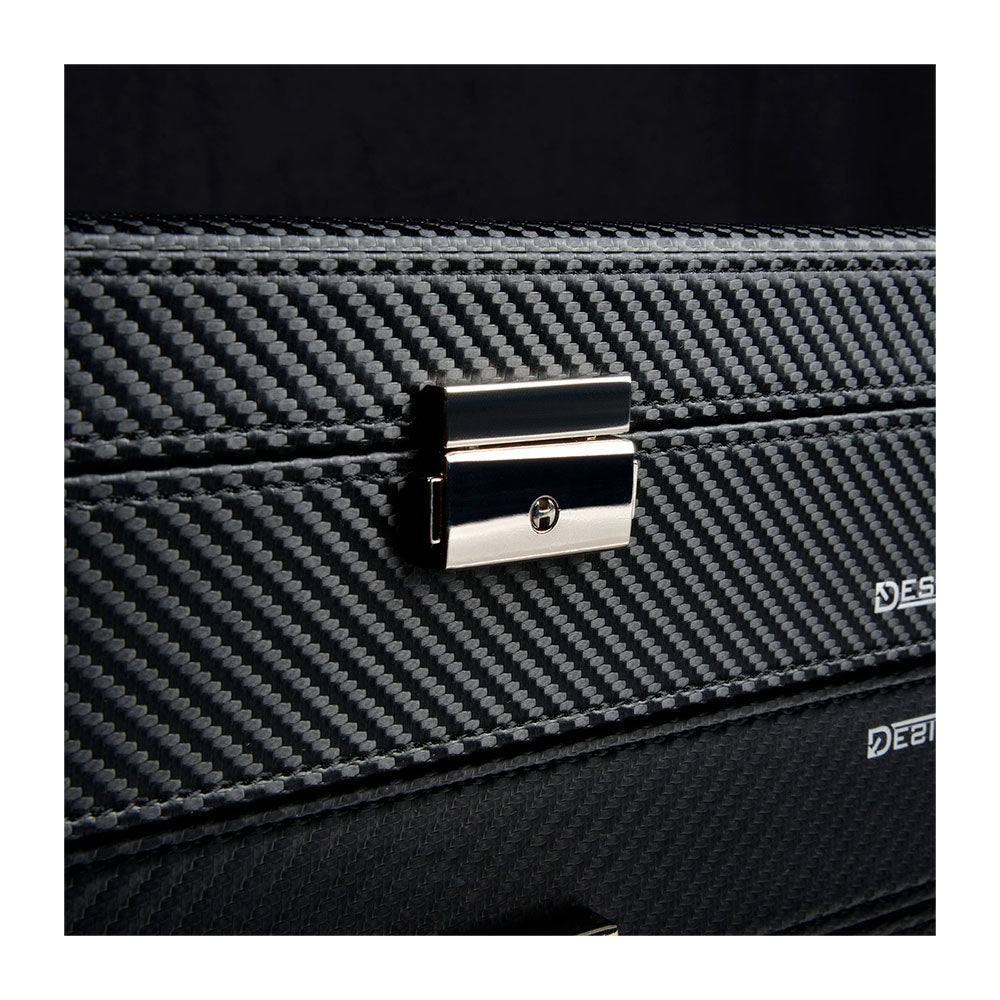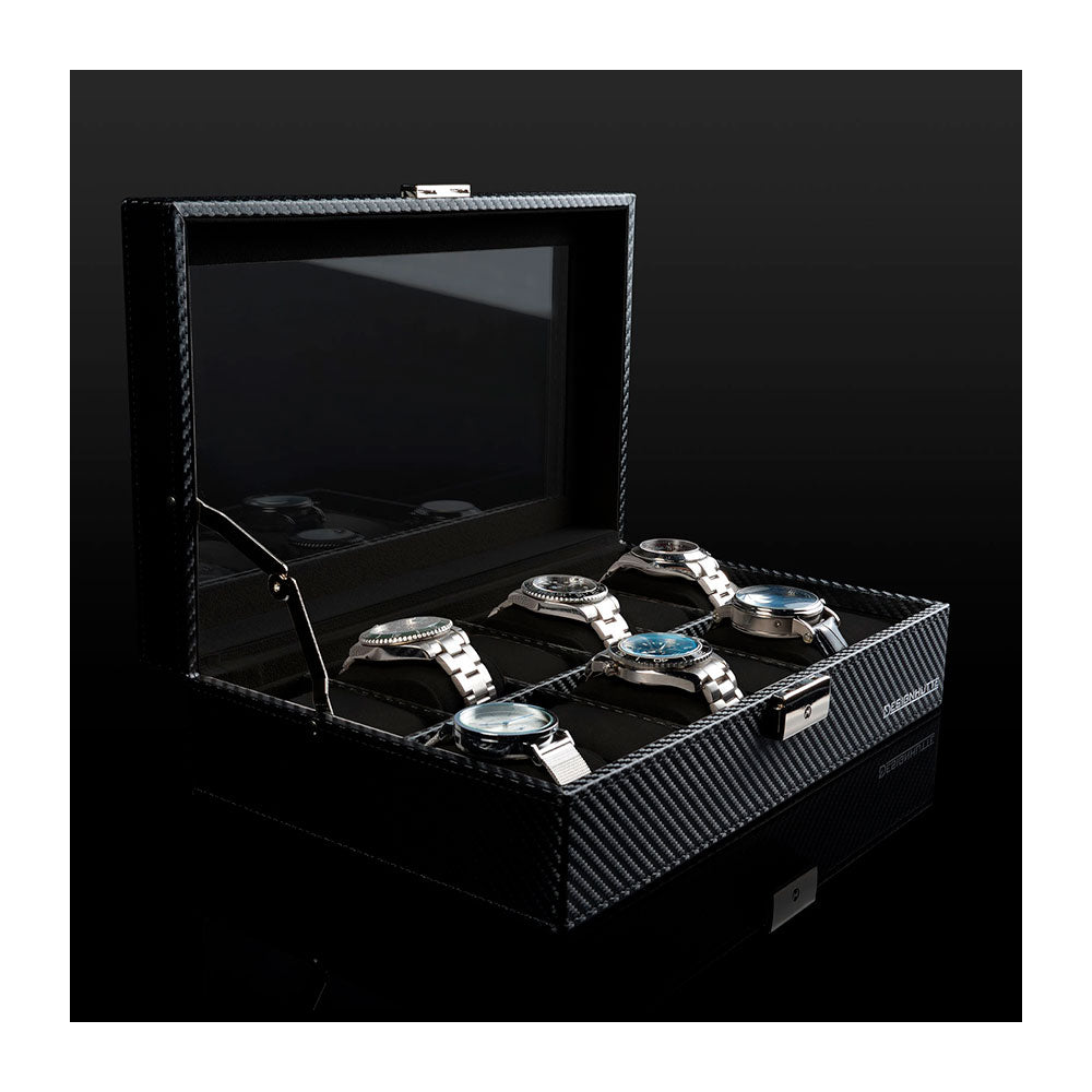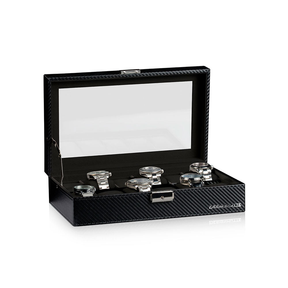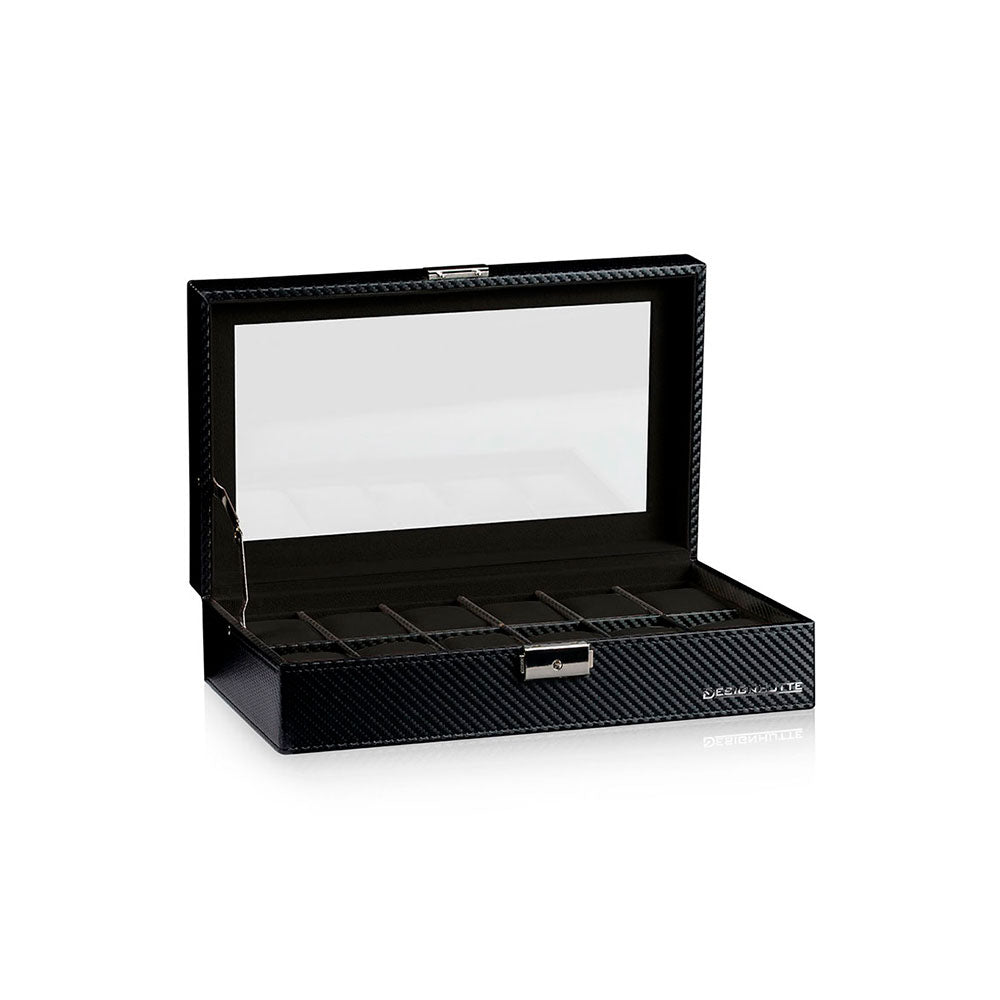 Saksalaisen Designhutten nuorekas kellolaatikko 12 kellolle. Sisusta on vuorattu samettisella, mustalla kankaalla. Boksi on varustettu katseluikkunalla, sinulle tärkeät aikaraudat ovat siis koko ajan nähtävillä!| Tuotetyyppi | Kellolaatikko |