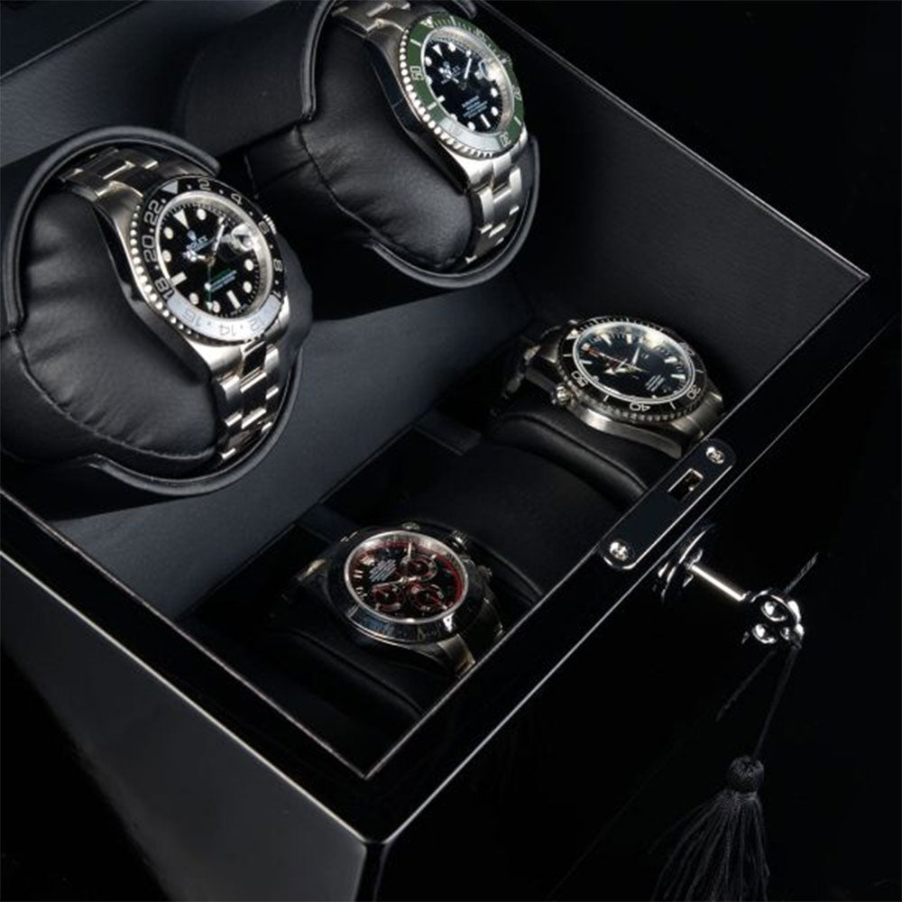 Designhütten kellonpyörittäjä München 2 kahdelle kellolle. Lisäksi pyörittäjän etuosassa on säilytyspaikka jopa neljälle kellolle. Avaimella lukittava kansi pitää innokkaimmat utelijat loitolla. Huolellisesti valitut materiaalit ja korkealaatuinen käsittely tekevät tästä kellonpyörittäjästä täydellisen säilytyspaikan ainutlaatuisille kelloillesi.| Tuotetyyppi | Kellonpyörittäjä |