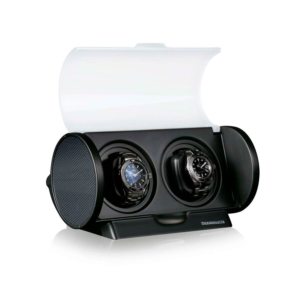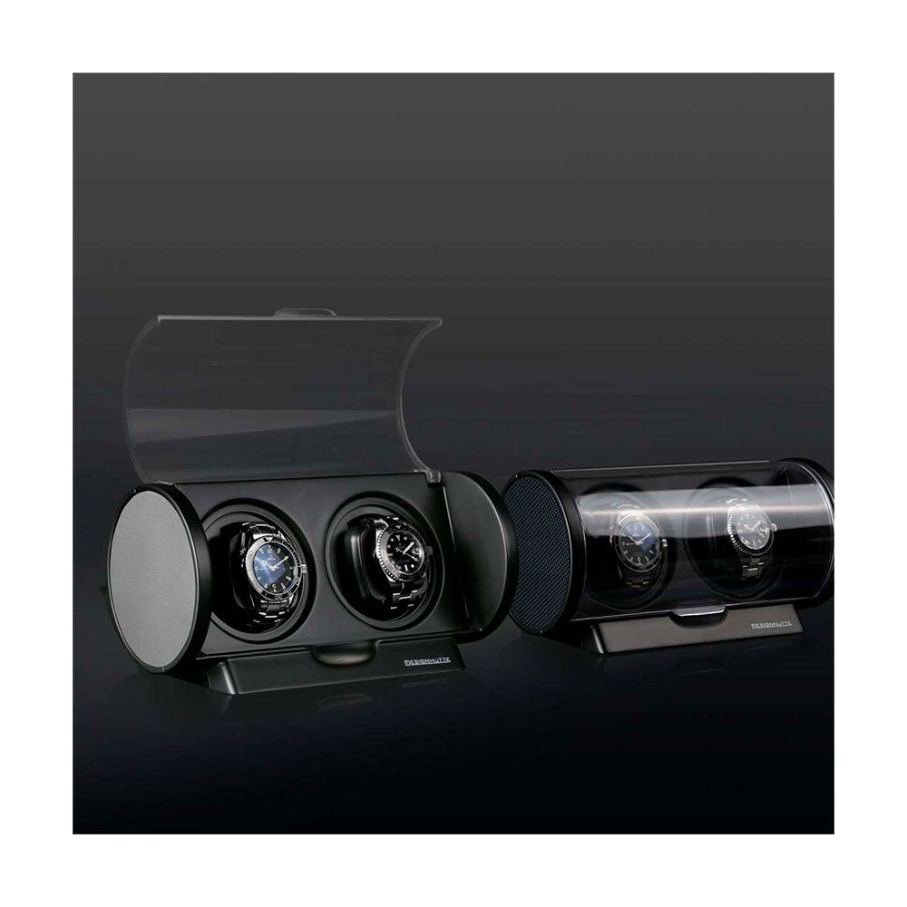 Designhutten Tubix-sarjan kellonpyörittäjä kahdelle automaattikellolle. Suoralinjainen muotoilu, varma toimivuus ja käytännöllinen pölysuoja takaavat parhaan säilytyspaikan kellollesi.| Tuotetyyppi | Kellonpyörittäjä |