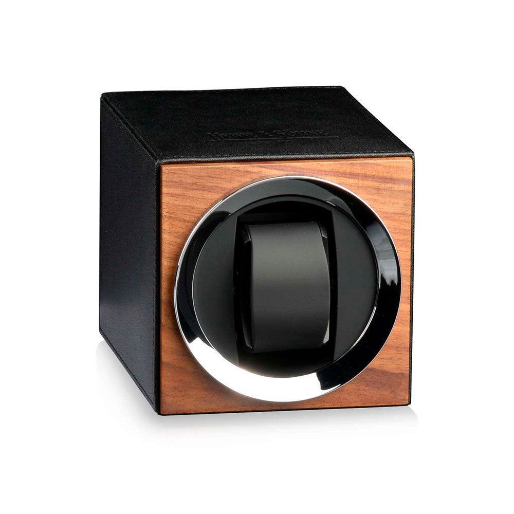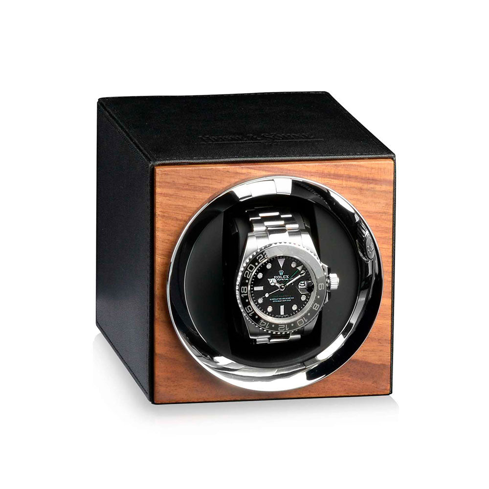 Korkealaatuinen Heisse & Söhne -kellonpyörittäjä Moon yhdelle kellolle. Kuten Daavidin ja Goljatin tapauksessa, koolla ei aina ole väliä. Kellonpyörittäjä Moon erinomainen paristoilla toimiva winderi tyylikkäällä ulkonäöllä. Neljä erilaista ohjelmaa varmistavat kellon virityksen ilman ongelmia.- Valmistettu laadukkaista materiaaleista