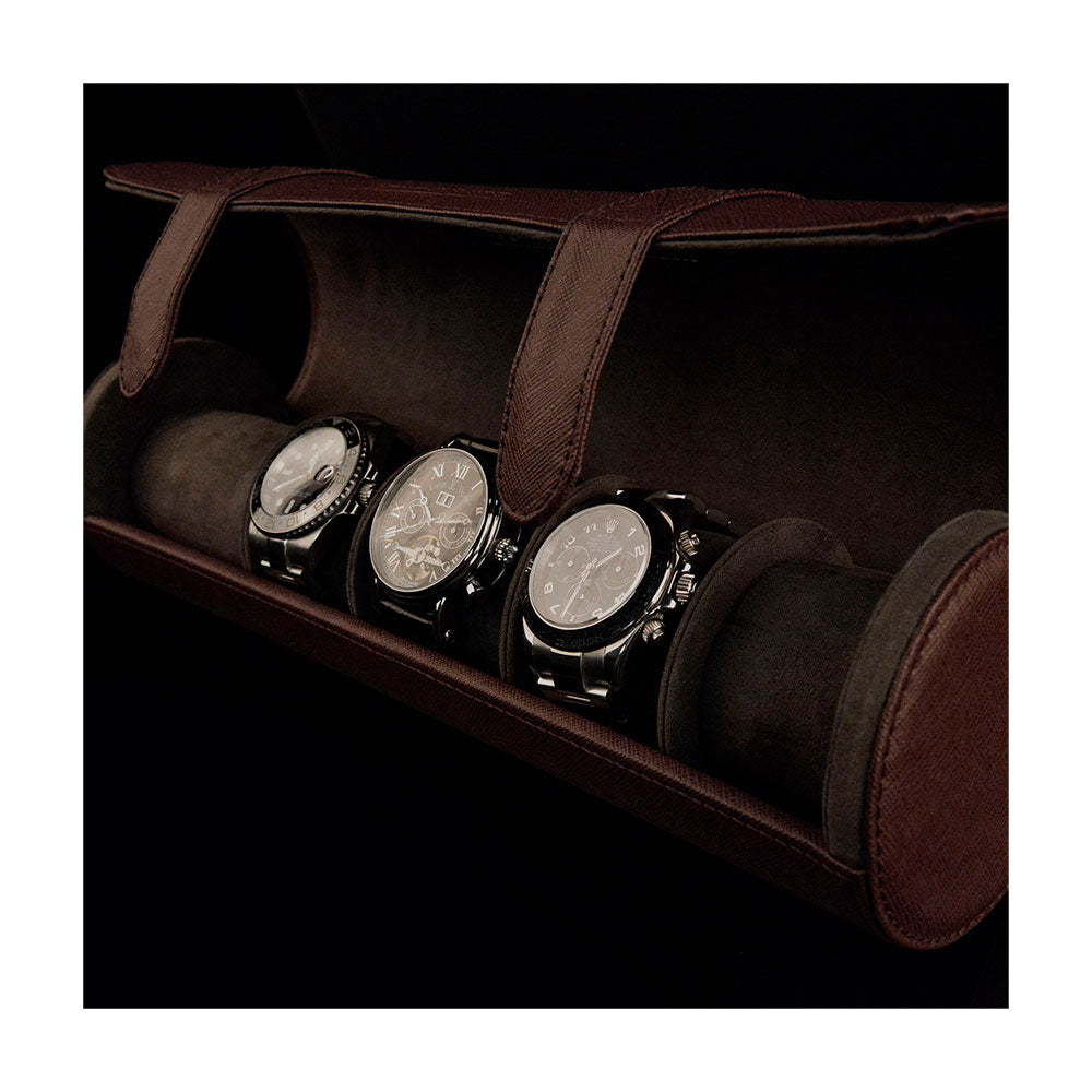 Korkealaatuisesta nahka-kuitumateriaalista valmistettu Heisse & Söhne kellorulla on maailmanmatkailijoiden suosikki. Rondo-kellorulla on muotoilullaan, toiminallaan ja kompaktilla koollaan ihanteellinen tapa säilyttää kelloja. Pehmeän samettisen sisäpuolen ansiosta kellosi on suojattu pölyltä ja naarmuilta.| Tuotetyyppi | Kellorulla |