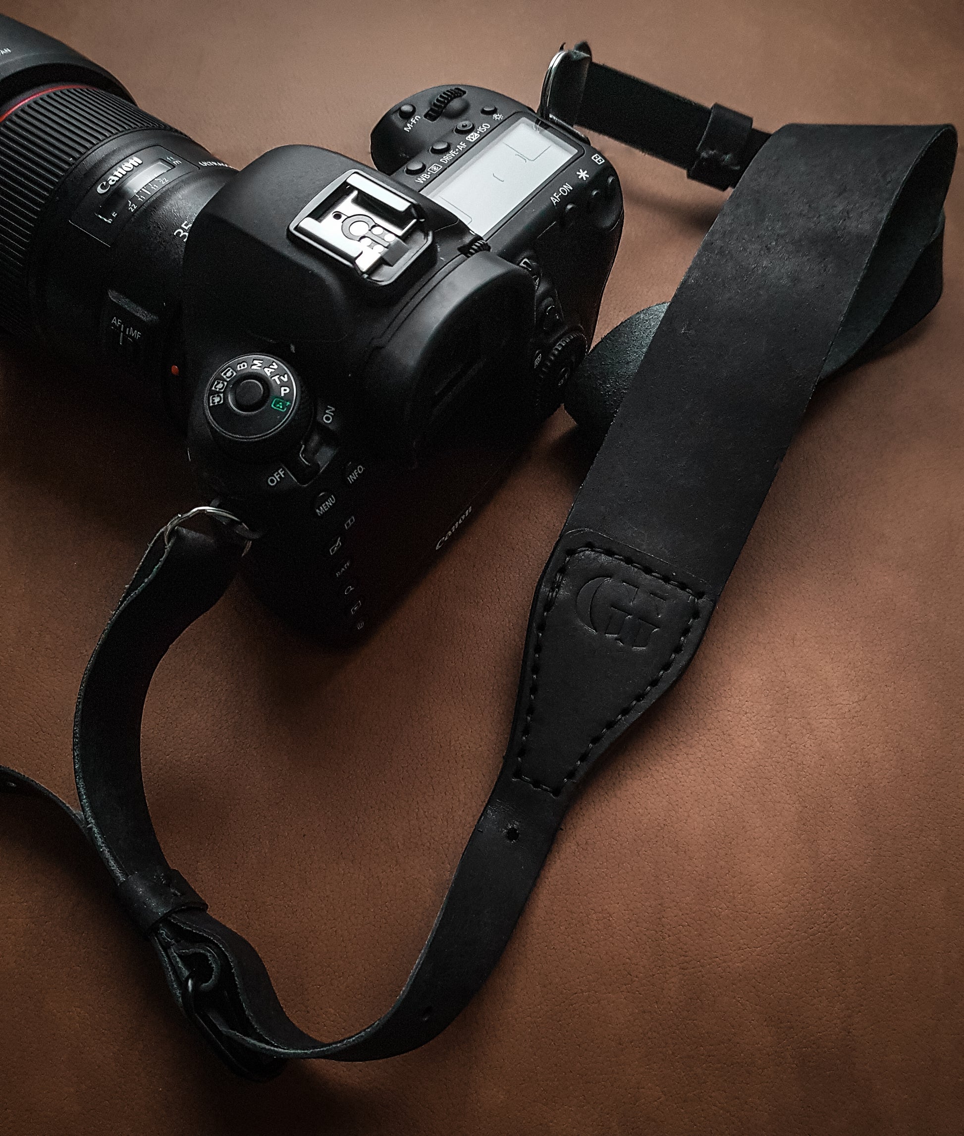 Erittäin laadukas käsintehty nahkainen Gear & Goods -kamerahihna.