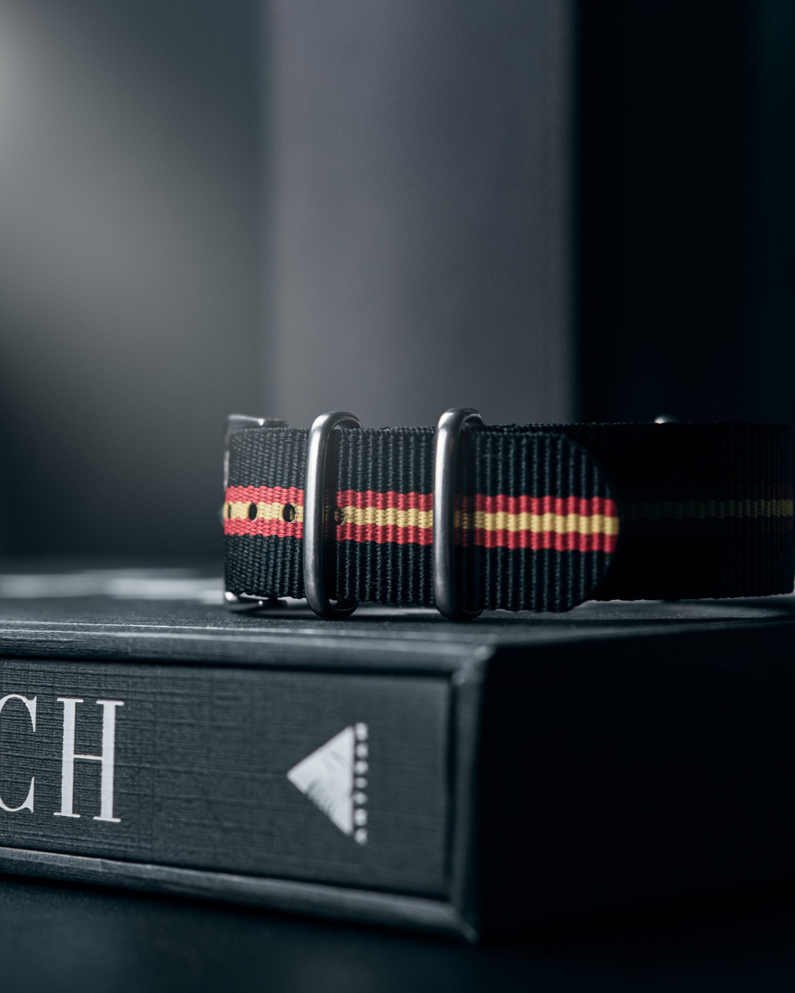 THE "NATO RANNEKE" oli kehitetty Britannian puolustusministeriön (MOD) toimesta vuonna 1973. Vaatimus oli luoda sellainen kellon ranneke, joka kestää vettä (silloinen ranneke oli nahkainen) ja sopisi irroitettavilla jousitapeilla oleviin kelloihin.
