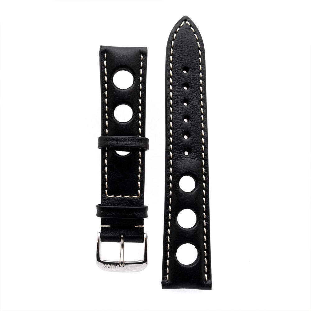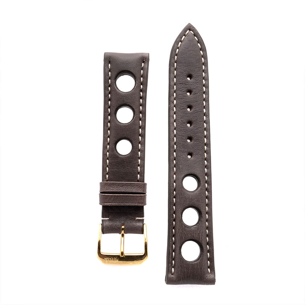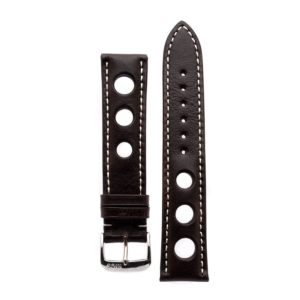 Rios1931 Kaluga racing-tyyppinen nahkaranneke, joka on valmistettu ns. russian leatherista. Korkealaatuinen ranneke tarjoaa äärimmäisen mukavan ranneistuvuuden. Rannekkeen paksuus ohenee solkea kohden. Valkoiset tikkaukset. Saatavilla eri väreissä.- Pitkä osa 114mm, lyhyt osa 82mm