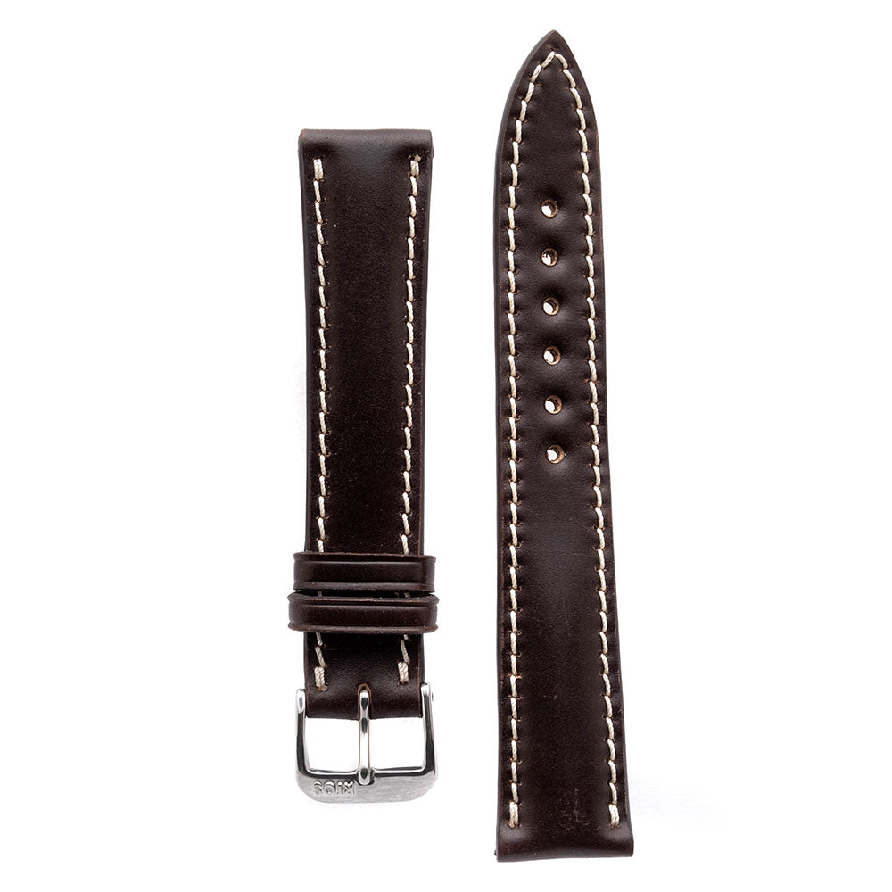Rios1931 New York nahkaranneke on valmistettu korkealaatuisesta shell cordovan-nahasta, mikä antaa sille ylellisen ulkonäön sekä erittäin kestävän rakenteen. Runsailla pehmusteilla varustettu ranneke on erittäin mukava ranteessa. Rannekkeen paksuus ohenee solkea kohden. Solki valmistettu nikkelivapaasta ruostumattomasta teräksestä. Saatavilla eri väreissä.- Pitkä osa 114mm, lyhyt osa 82mm