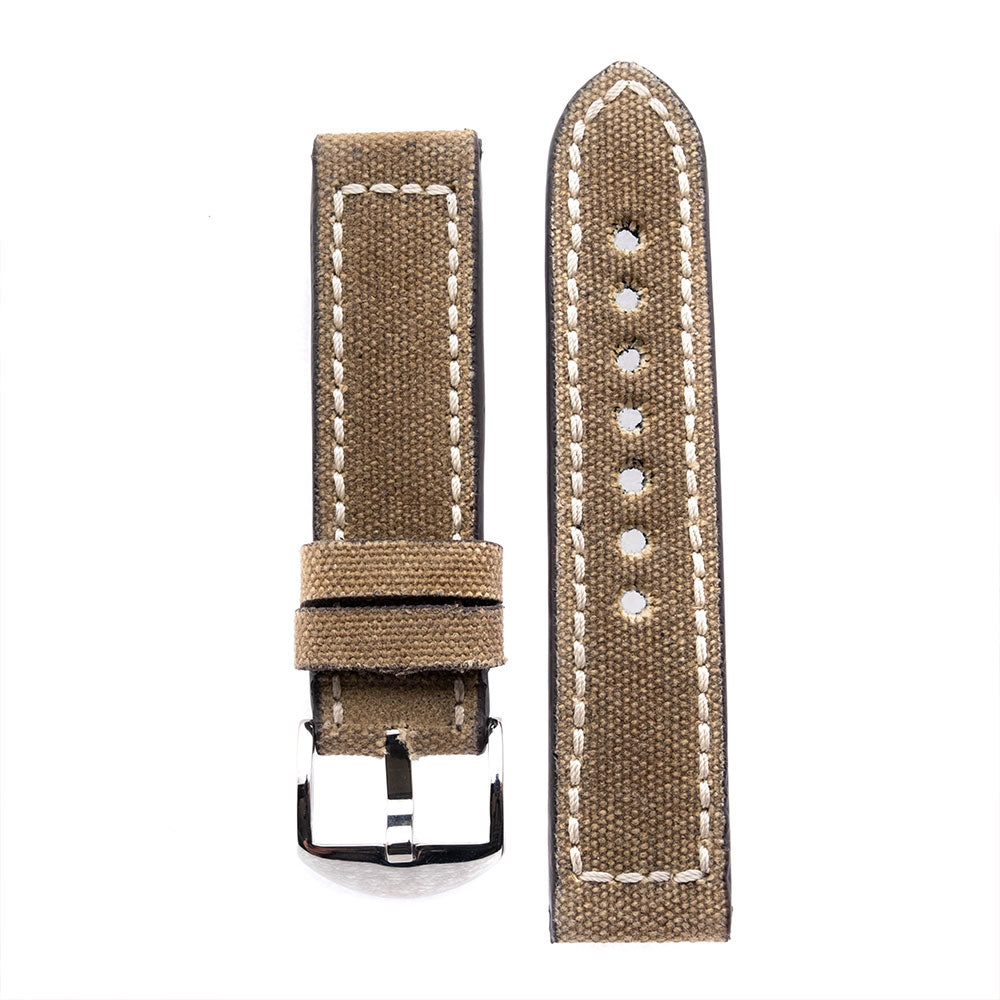 Rios1931 Ohio - kangasranneke. Erittäin kestävää "Vintage kangasta". Jokainen ranneke on valmistettu käsin, joten patina vaihtelee rannekkeittain. Jokainen ranneke on siis uniikki. Sisäpuoli on nahkavuorattu. Valkoiset tikkaukset. Solki valmistettu nikkelivapaasta ruostumattomasta teräksestä. Saatavilla eri väreissä.- Pitkä osa 114mm, lyhyt osa 82mm