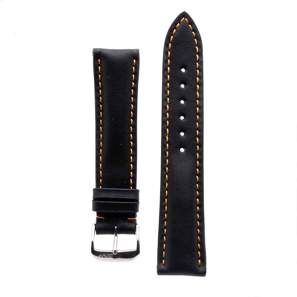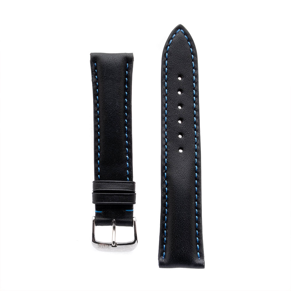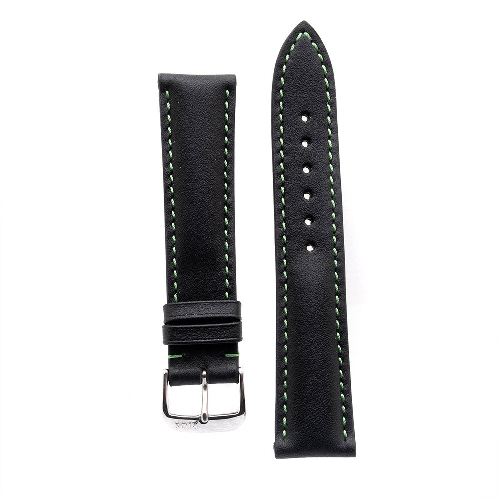 Rios1931 Smart on kauniin yksinkertainen. Rannekkeen musta väri ja värikkäät tikkaukset antavat tälle rannekkeelle luonnetta. Valmistettu laadukkaasta lehmännahasta. Solki valmistettu nikkelivapaasta ruostumattomasta teräksestä. Rannekkeen paksuus ohenee solkea kohden. Saatavilla eri väreissä.- Pitkä osa 114mm, lyhyt osa 82mm