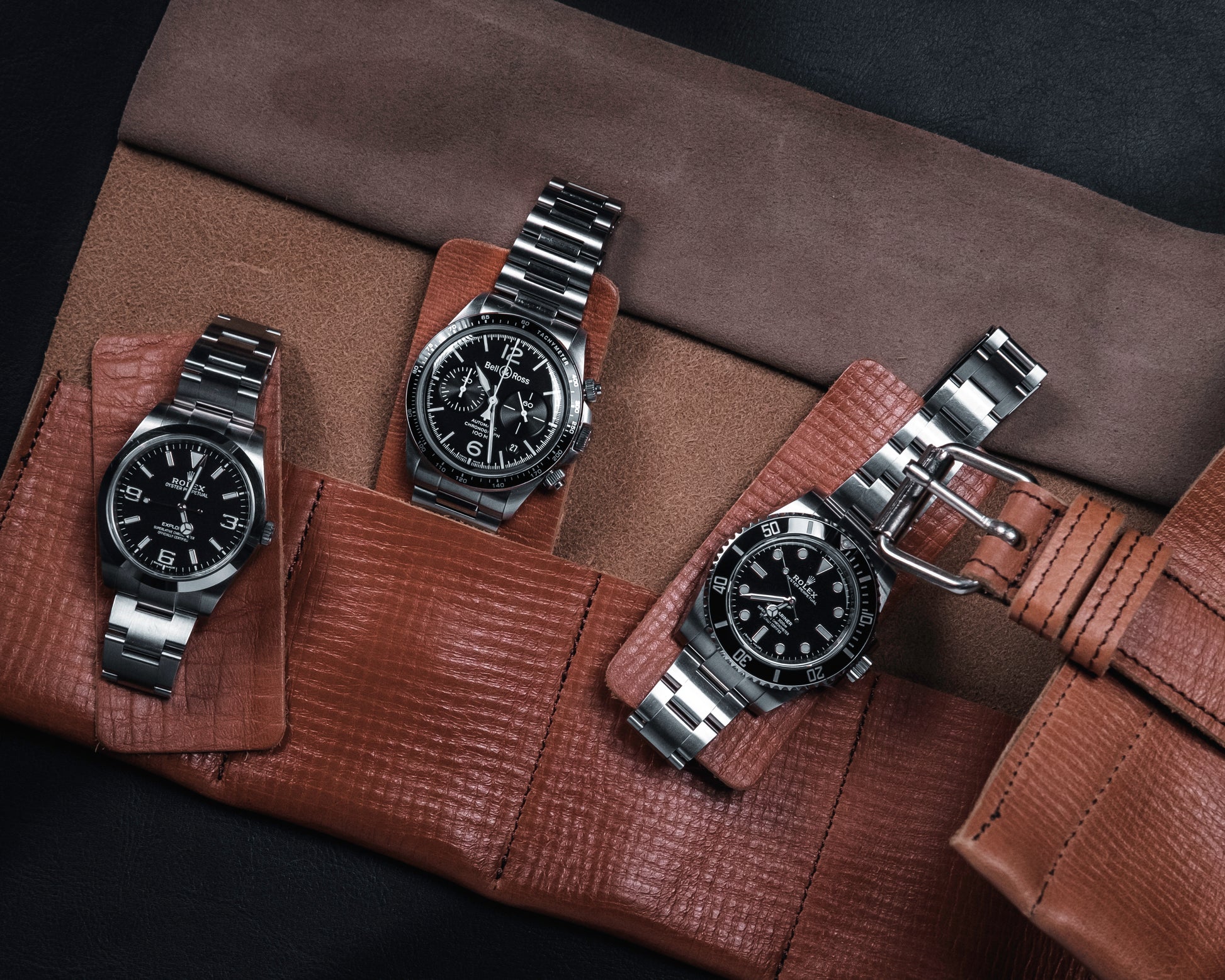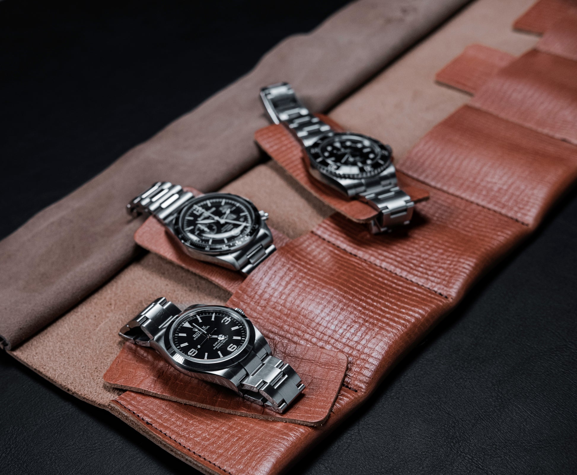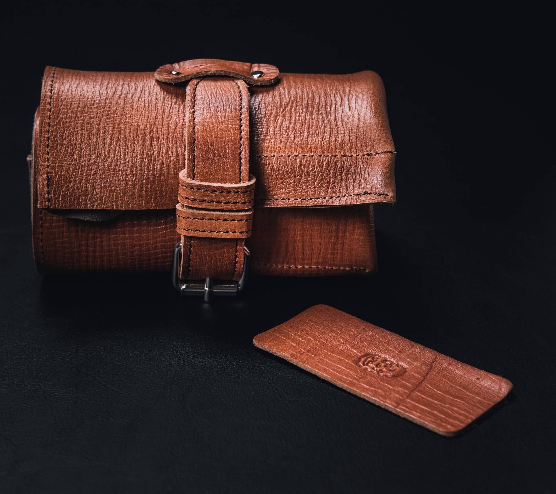 Laadukas nahkarulla 6 kellolle. "Vyön solki" millä rulla suljetaan.
