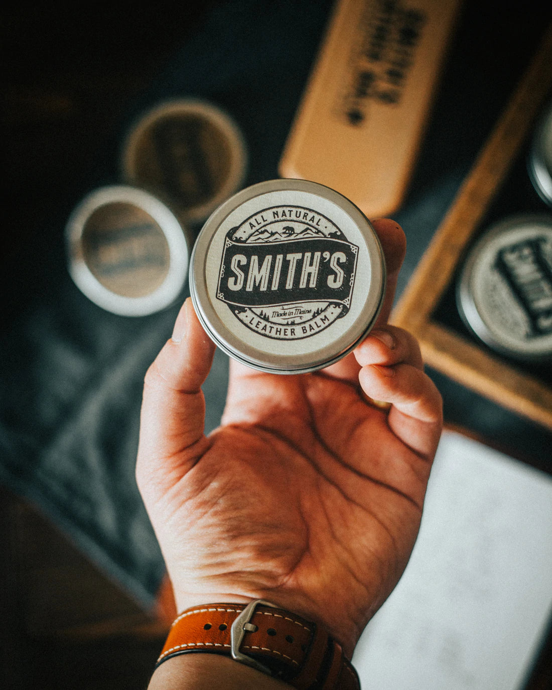 Smith’s Leather Balm on myrkytön, luonnollinen nahanhoitoaine joka hoitaa kuluneen nahan ja suojaa uusia nahkatuotteita. Sitä voi turvallisesti levittää käsin ja 1 oz (30 ml) purkki mahtuu vaivatta taskuun tai laukkuun. Useimmille käyttäjille purkki kestää 6-12 kk.