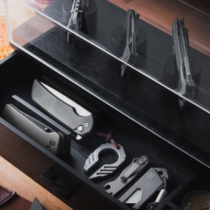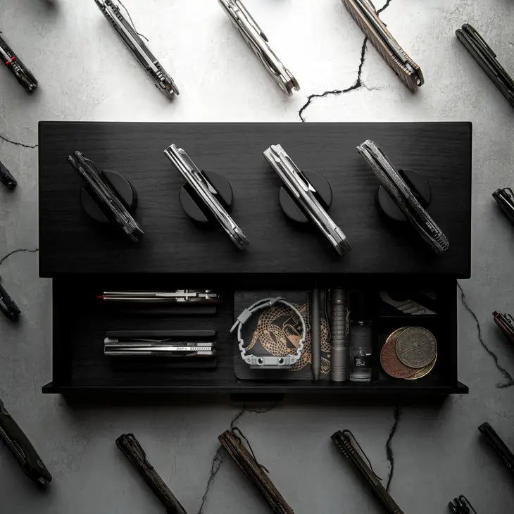 Veitsien säilytyksen lisäksi voit myös säilöä kaiken EDC-kaman vetolaatikoissa.